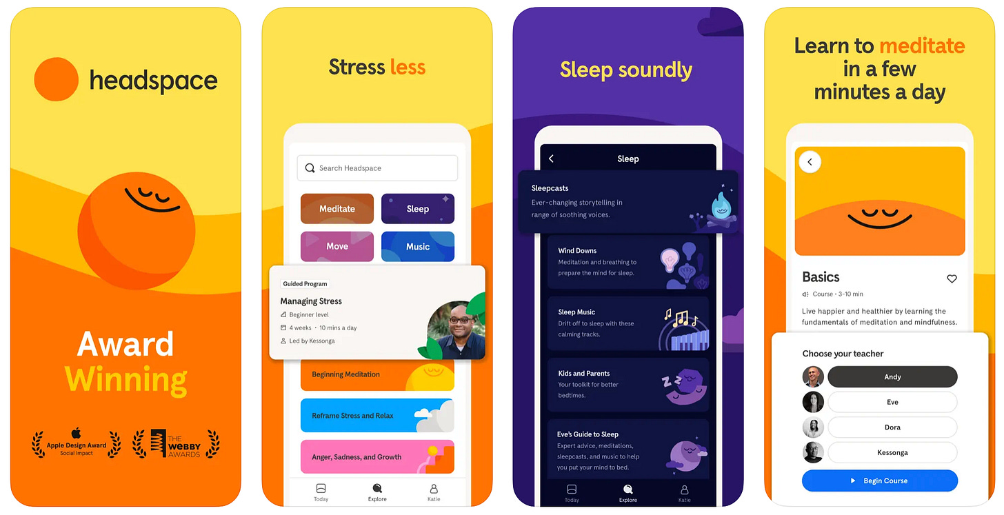 “Headspace”, kullanıcıların stresle başa çıkmalarına, odaklanmalarını artırmalarına ve genel zihinsel sağlıklarını iyileştirmelerine yardımcı olmak amacıyla tasarlanmış bir meditasyon ve mindfulness uygulaması.