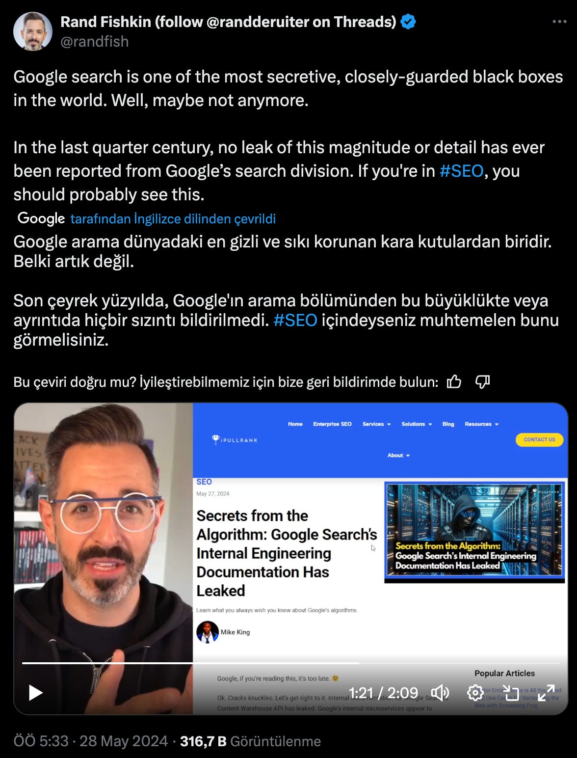 Google algoritmasının sızdığına dair ortaya çıkan bu bilgiler, ilerleyen günlerde daha fazla inceleme ve değerlendirmeye tabi tutulacak gibi görünüyor. (Kaynak)