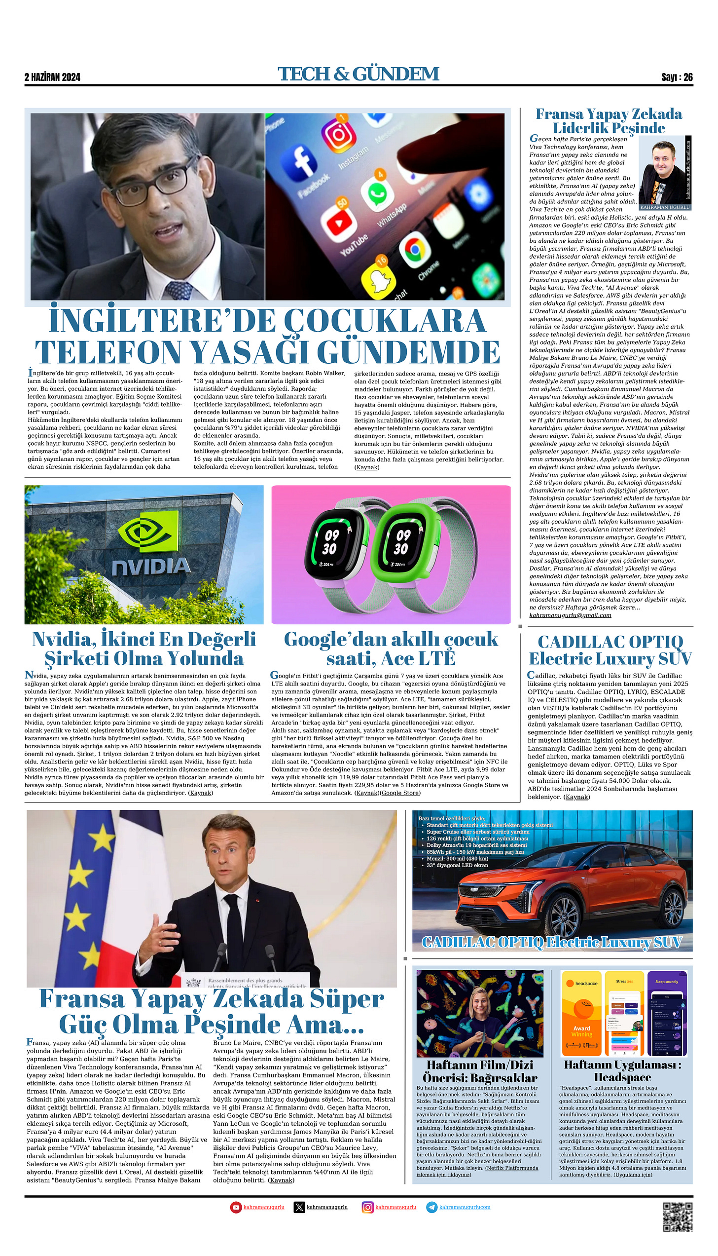 💾 Nvidia, İkinci En Değerli Şirket Olma Yolunda ⛔️İngiltere’de Çocuklara Telefon Yasağı ⌚️Google’dan Akıllı Çocuk Saati 🧠Fransa Yapay Zekada Liderlik Peşinde 💰Kripto Düzenlemesi Komisyondan geçti.